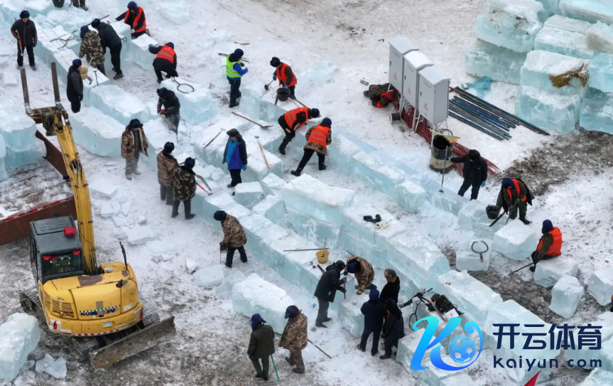 工东说念主在第二十六届哈尔滨冰雪大世界冰建施工现场功课。张树摄(新华社)