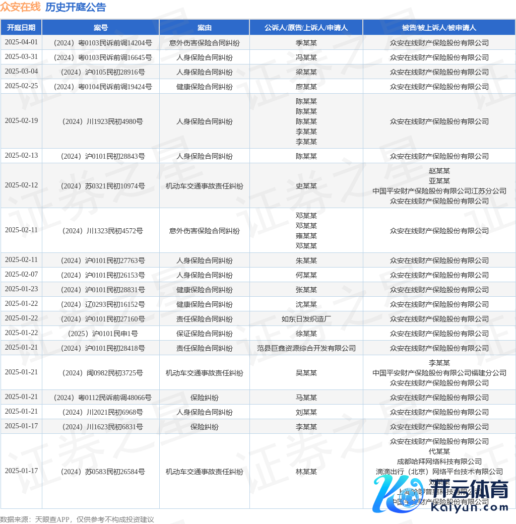 本站音信九游体育app(中国)官方网站,左证天眼查APP露出,近日公布了一则众何在线财产保障股份有限公司行动被告/被上诉东谈主的开庭公告,贵重本色如下: