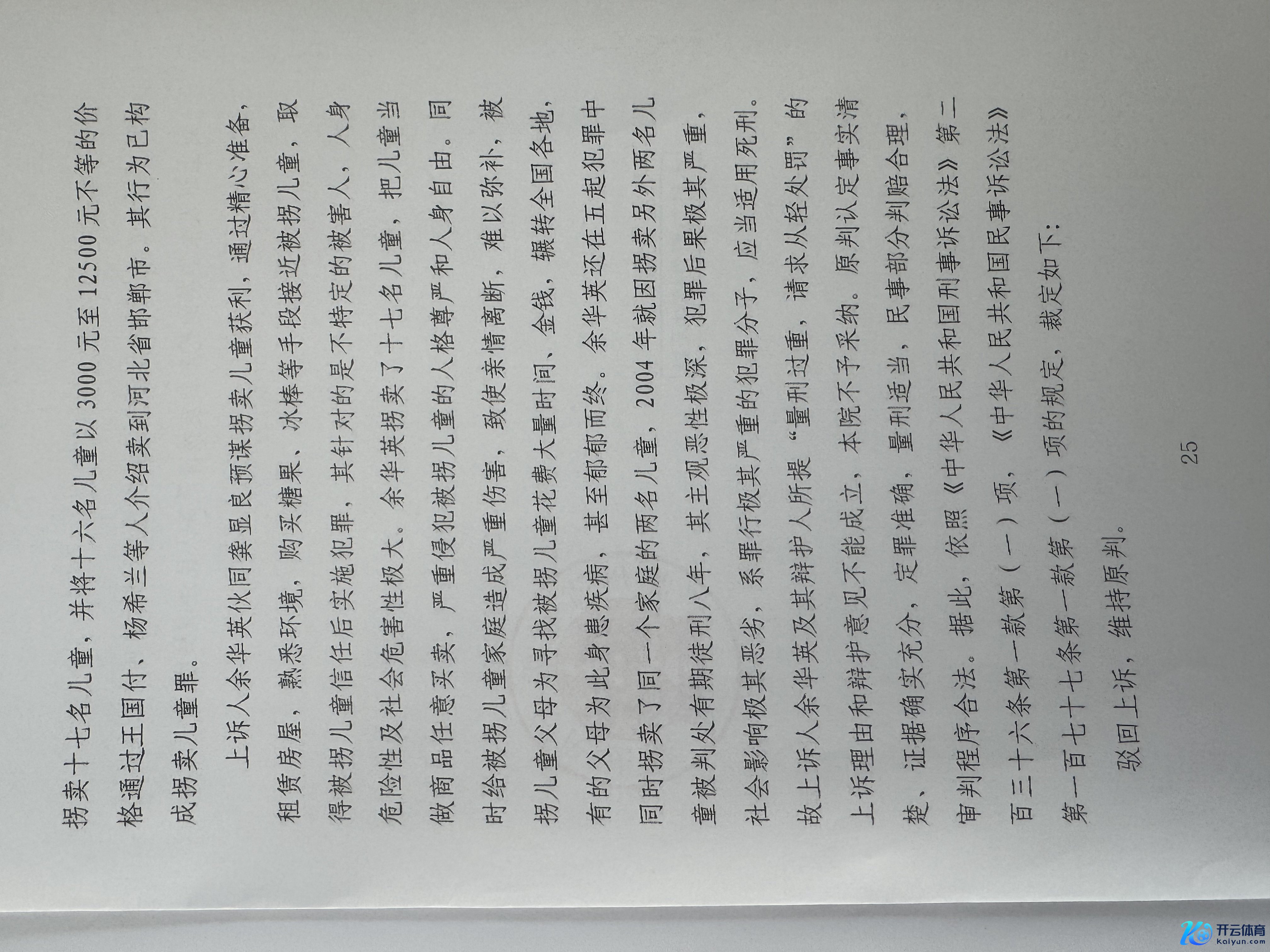 贵州高院重审二审判决书涌现,法院以为,余华英为赢得违规利益,于1993年至2003年技术分辩勾结龚显良、王加文在贵州省贵阳市、遵义市、王人匀市、安顺市,重庆市大足区,云南省大理市、丽江市流窜作案,拐卖十七名儿童,并将十六名儿童以 3000元至 12500元不等的价钱通过王国付、杨希兰等东说念主先容卖到河北省邯郸市。其行径已组成拐卖儿童罪。