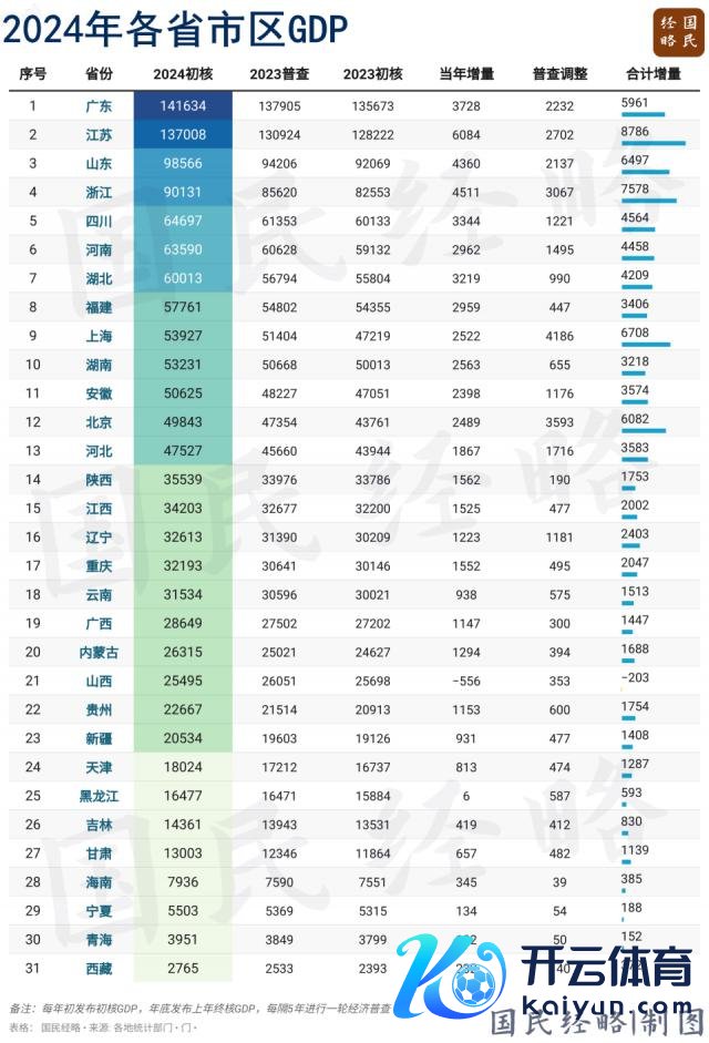 与上一轮经济普查不同,那时 14 省遭受"挤水分",这一次一起调增,可谓"雨露均沾"。