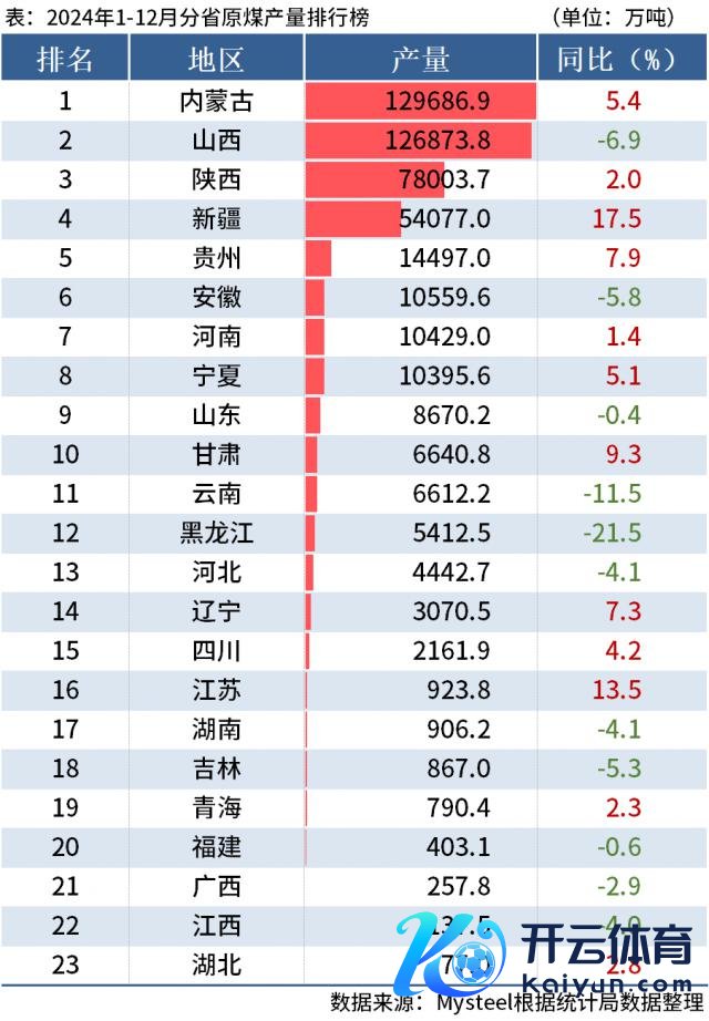2024 年内蒙古原煤产量 12.97 亿吨,跃居宇宙第一,同比增长 5.4%;同期山西原煤产量 12.69 亿吨,同比下落 6.9%。