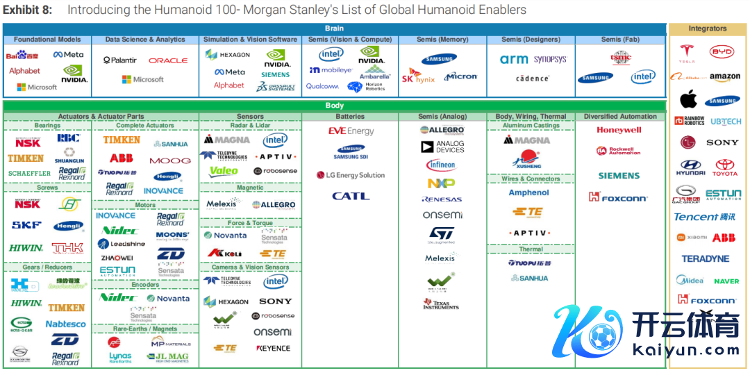 摩根士丹利本月发布了《东说念主形机器东说念主 100:绘画东说念主形机器东说念主价值链图谱》汇报,公布人人东说念主形机器东说念主产业链百强榜,其中中国有 36 家企业上榜。此外,人人 56% 的东说念主形机器东说念主酌量公司总部位于中国。