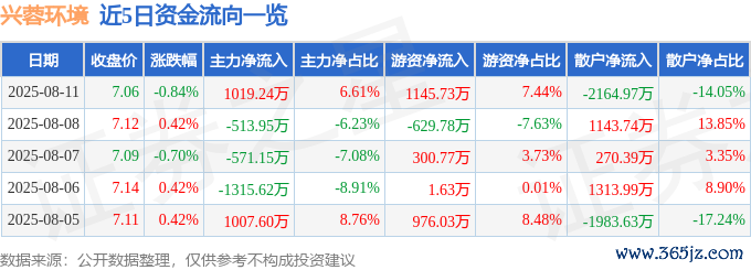 本站音书,扫尾2025年8月11日收盘,兴蓉环境(000598)报收于7.06元九游体育app娱乐,下降0.84%,换手率0.73%,成交量21.85万手,成交额1.54亿元。